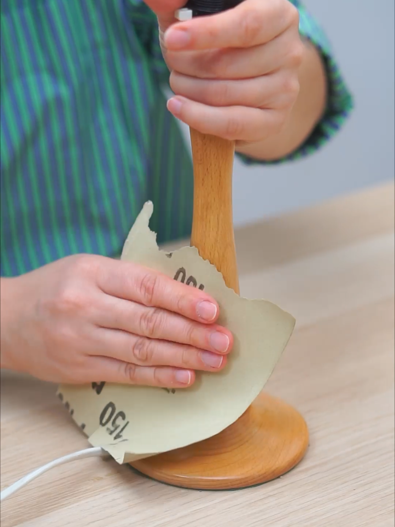 First things first, I needed to clean up the lampshade. It was covered in grime, but underneath all that mess was some really nice wood. So, armed with sandpaper, I got to work sanding away the dirt and revealing the natural wood underneath. It was like uncovering buried treasure!